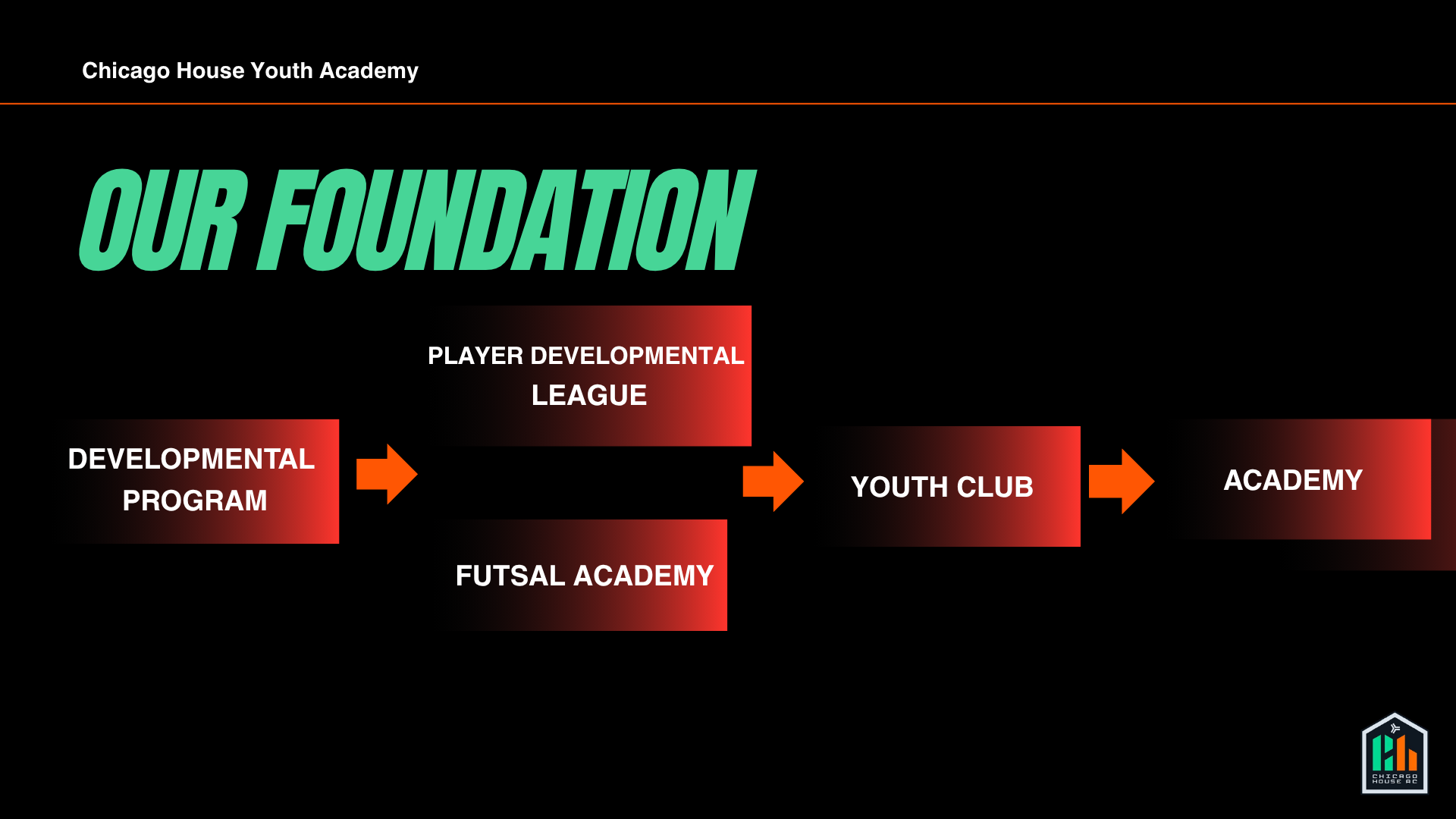 The path culminates in full Club membership, where they represent House at the highest levels of youth soccer.
