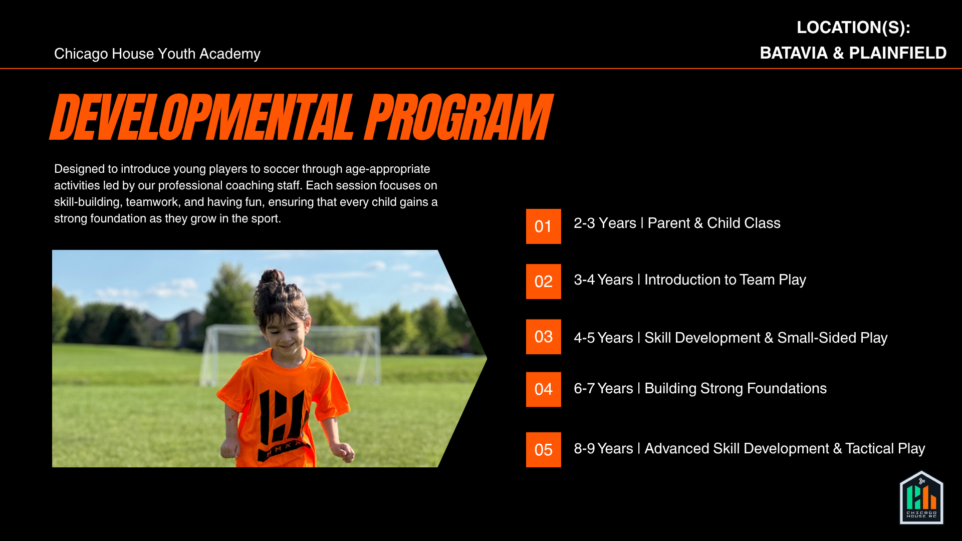 ✔ Pathway to Competitive Soccer: Opportunities to progress to higher levels within Chicago House AC
